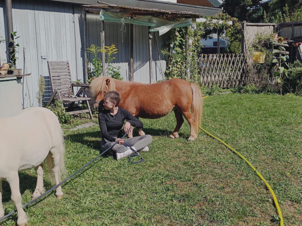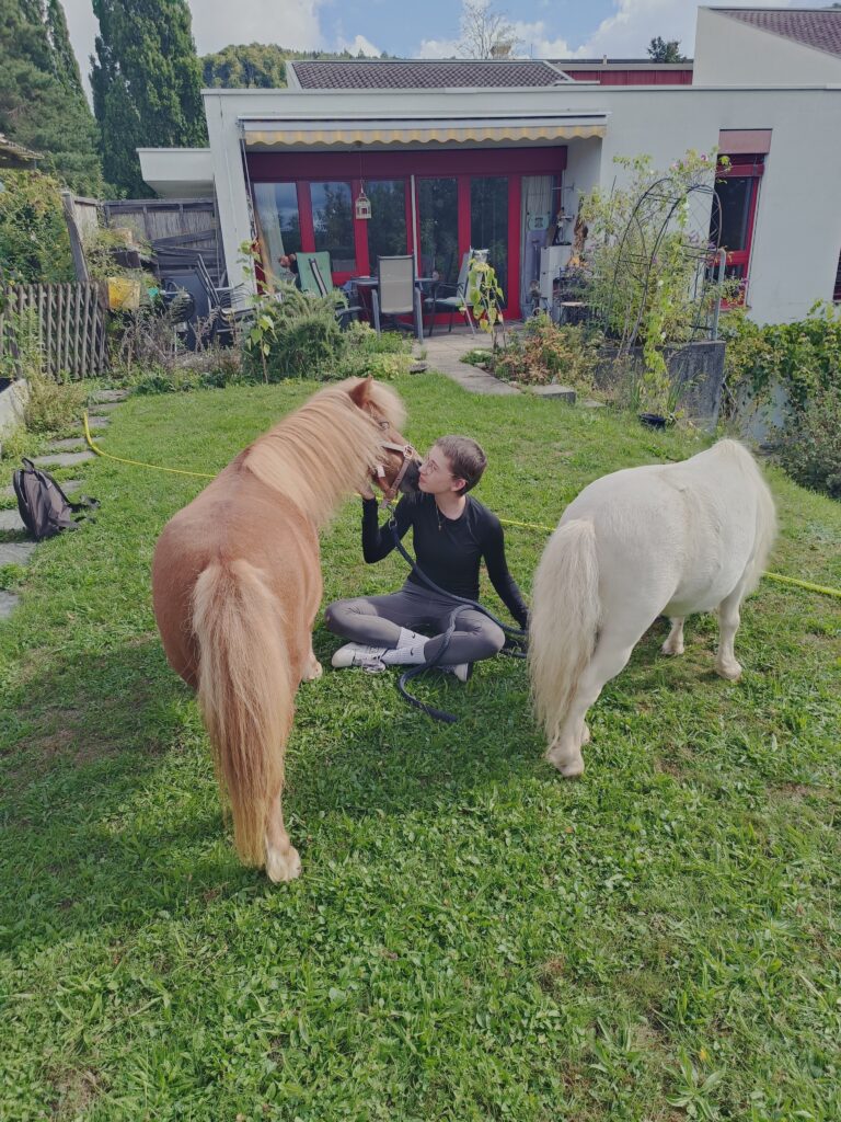 Es besteht auch die Möglichkeit mit meinen Ponys oder Pferden zum Patienten nach Hause zu kommen.