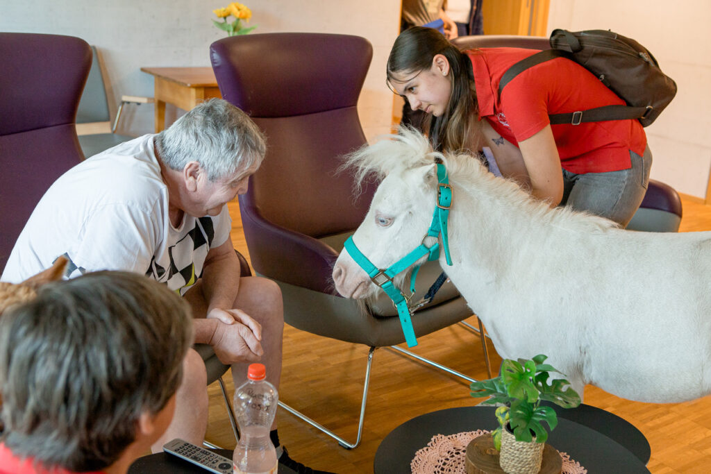 oder anderen Institutionen und schenken dabei viel Freude. Da die Ponys sehr klein sind und sogar Lift fahren, können auch Besuche